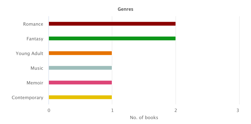 As for genres, this checks out. Romance and fantasy are always my top genres. Pretty self explanatory.